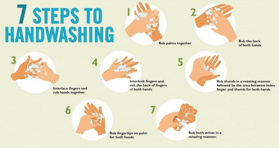 Rajin mencuci tangan dapat dengan sabun minimal 20 detik dan juga menggunakan Hand Sanitizer jika berada ditempat umum dapat membunuh virus yang mungkin berada di tangan kamu loh! Nah, dalam mencuci tangan juga terdapat beberapa Langkah agar tangan kamu benar-benar sudah steril dari Virus ataupun kuman. Coba lihat gambar di bawah ini: