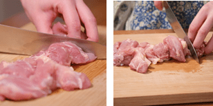 - Potong 200 gram ayam menjadi potongan sesuai selera (ukuran sedang) hingga potong menjadi sama rata.