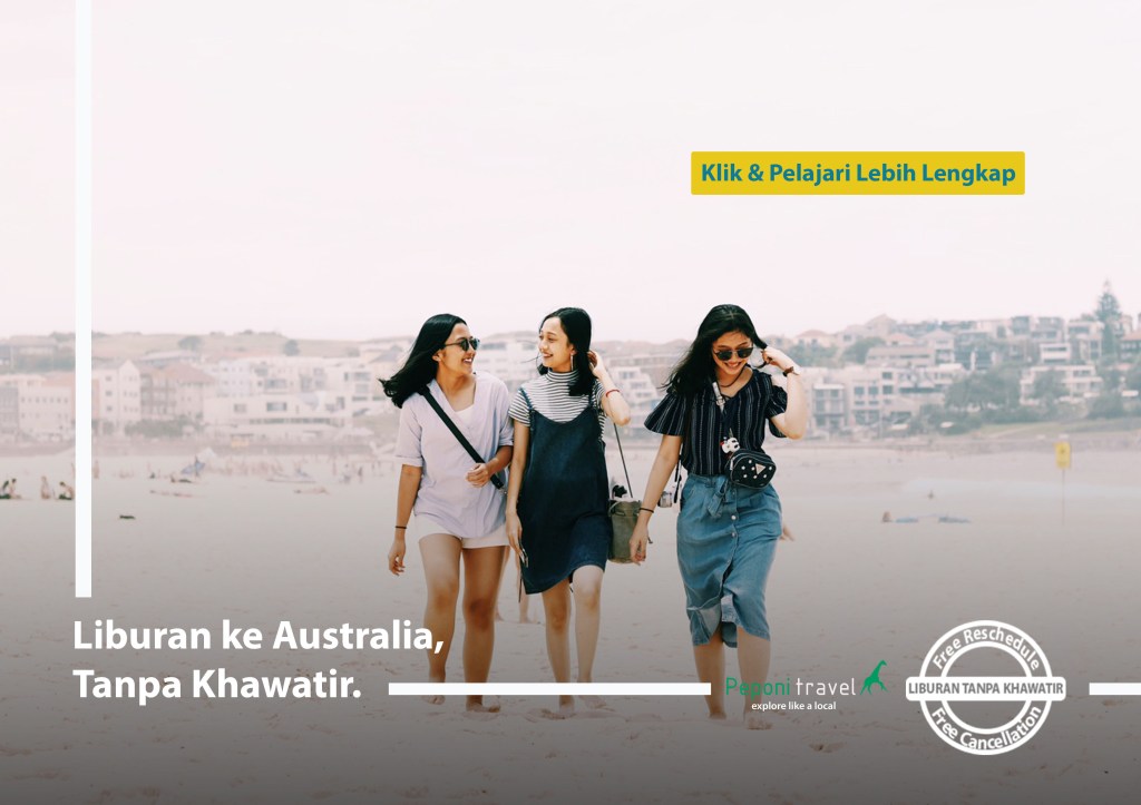 Sekarang kamu sudah bisa mulai merencanakan perjalanan ke Australia, tanpa khawatir. Nikmati kebijakan Free Reschedule & Cancellation dari Peponi Travel. Pelajari informasi lebih lengkapnya di bawah ini: