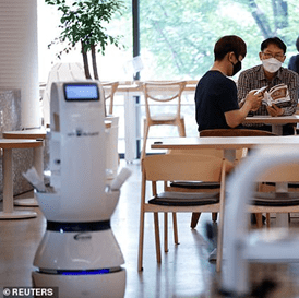 Dilansir dari Tribun Travel.com salah satu café di Daejon, Korea Selatan menggunakan robot barista untuk menerapkan social distancing. Dilly Tower adalah sebuah robot Self-Driving yang dikembangkan oleh perusahaan Vision Semicon untuk membantu para pelaku bisnis untuk tetap dapat menerapkan social distancing agar memutus rantai penyebaran COVID-19 dimasa New Normal. Nah, robot ini dapat melayani pembeli dan juga mengantarkan pesanan karena terdapat fitur kamera pelacak berdasarkan pesanan yang diterima! Wah sangat canggih sekali bukan?