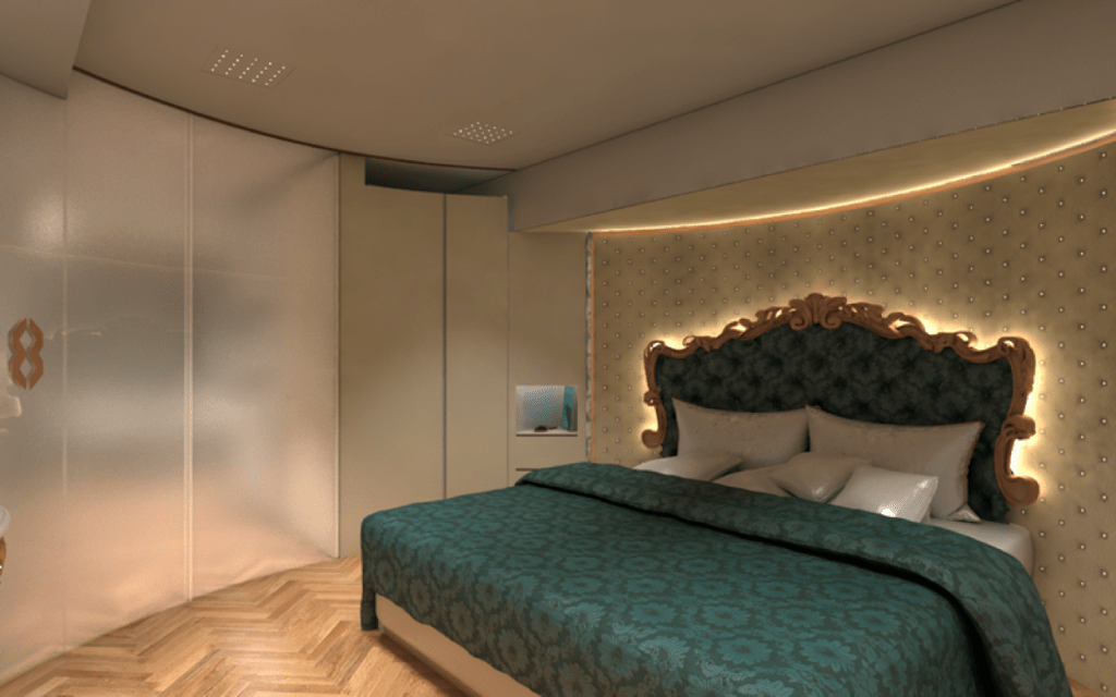 Merupakan salah satu mobil rumah termewah yang dikembangkan oleh Marchi Mobile. Bagian luar mobil ini sudah menunjukan bentuk yang berkelas. Tentu bagian dalam mobil ini juga memiliki tampilan yang luar biasa dengan setup serba otomatis! Dengan satu sentuh saja kamu dapat mengubah bagian kabin mobil ini menjadi ruangan yang akan memberikan kenyamanan bagi penumpang. Mobil ini juga dilengkapi oleh TV LED, sofa mewah dan mini bar yang cocok untuk berkumpul dengan keluarga dan sahabat! Oh ya, ada toilet yang mewah, kamar tidur utama yang dilengkapi oleh King Size Bed serta Sky Lounge untuk menikmati indahnya pemandangan. Keren ya!