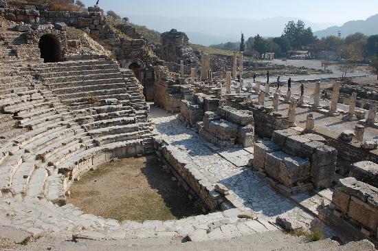 Selanjutnya kamu dapat menemukan teater Odeon. Apa fungsi teater Odeon pada masa itu? Teater Odeon dapat digunakan untuk perjamuan kecil Kekaisaran juga tempat dilangsungkannya pertunjukan. Teater Odeon ini dibangun pada Pemerintahan Vedius Antonius pada tahun 150 Masehi dan dikatakan juga daya tampung teater Odeon adalah sekitar 1500 orang dan memiliki jumlah tangga sebanyak 22 buah. Tentu ini akan sangat menarik untuk dikunjungi.