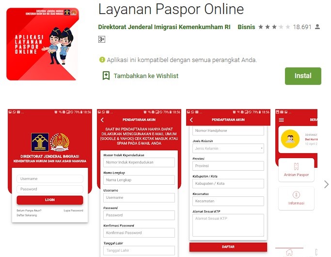 Unduh Aplikasi “ Layanan Paspor online” di Playstore atau Appstore