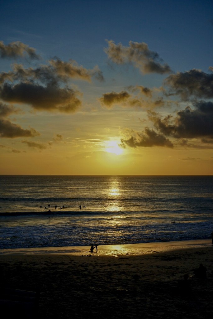 Di sana saya menemukan spot terbaik untuk berjemur, dan tentu jauh dari keramaian. Ombak di sana cukup indah dan banyak orang yang melakukan aktivitas surfing! Uniknya pengunjung di sana lebih banyak mengumpul di tengah laut sambil berenang di banding daerah pesisir pantai.