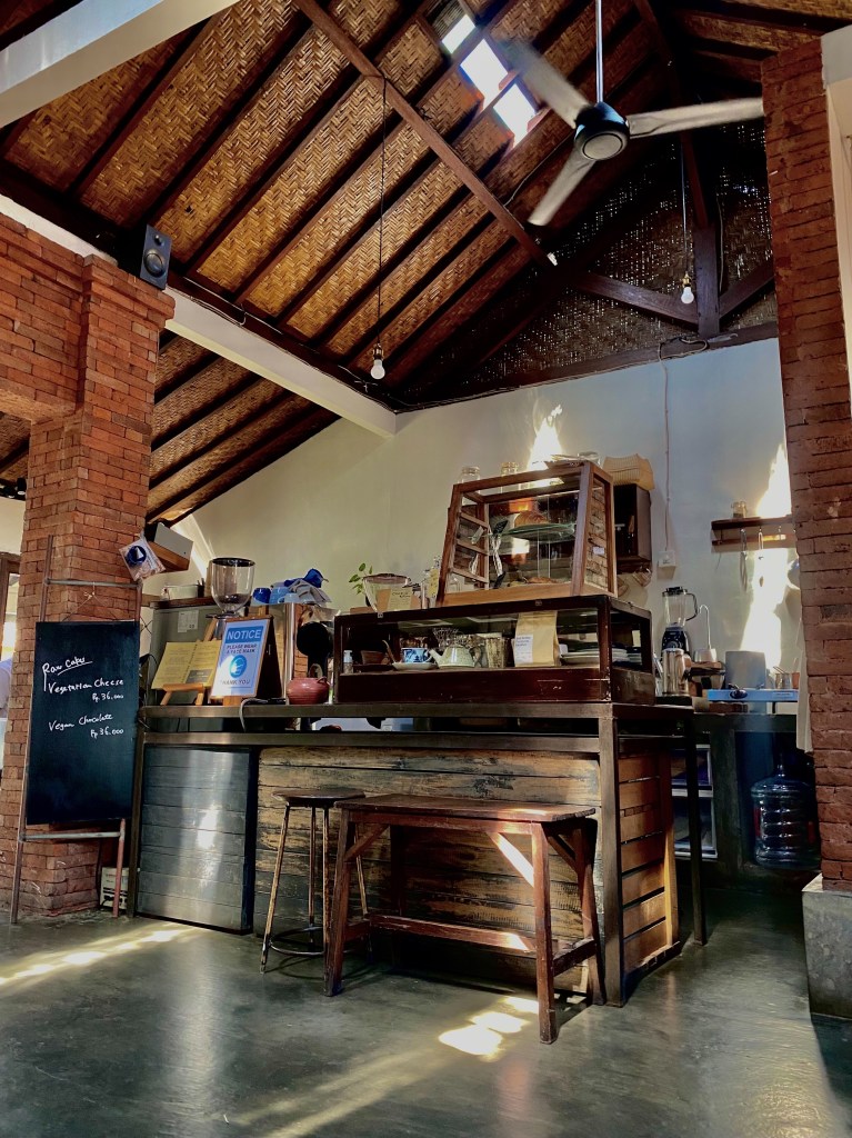 Pada saat itu kondisi sepi dan hanya ada beberapa pengujung dengan jarak yang sangat jauh. Pokoknya pada saat itu saya dapat leluasa untuk menikmati keindahan dari Tegalalang Rice Terrace. Setelah itu, saya memutuskan untuk pergi ke café lagi. Saya mendatangi Old Friends Coffee. Café ini sangat sederhana namun menyajikan kopi yang luar biasa. Rasanya kamu akan sedang bersantai di rumah nenek.