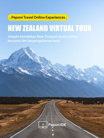 Tertarik untuk menikmati suasana New Zealand langsung dari rumah kamu? Ikuti yuk! PeponiOX layanan Online Experiences dari Peponi Travel! Cukup lewat aplikasi Zoom saja kamu dapat menjelajahi New Zealand langsung dari rumah kamu! langsung saja klik di sini untuk info lebih lanjut atau langsung saja hubungi layanan Customer Service kami di Whatsapp 0812-8931-5151 dan Jangan lupa untuk mengikuti social media kami di Instagram @peponitravel untuk mengetahui infromasi menarik lainnya! Sampai berjumpa online.
