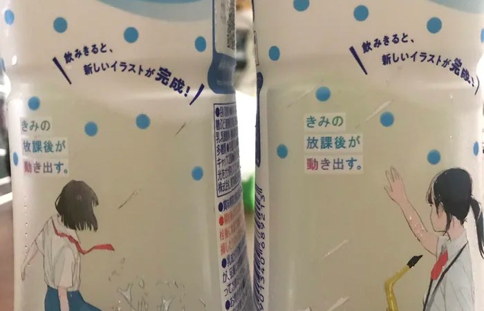 Merupakan sebuah minuman ringan yang menjadi andalan bagi anak-anak muda di Jepang loh! Hal unik pada minuman ini berada pada desain dari botolnya. Mungkin pada awalnya kamu akan melihat hanya sebuah ilustrasi anime saja yang menghiasi kemasan! Namun ketika kamu menghabiskan minuman tersebut kamu akan menemukan ilustrasi anime di sisi lain yang ternyata mengungkapkan sebuah cerita loh!